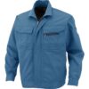 1号モデル:開衿タイプ グレイッシュブルーで胸に「岩倉螺子製作所」の刺繍